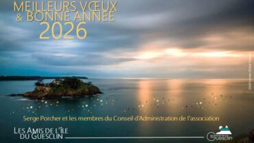 Les Amis de l’ile du Guesclin sont heureux de présenter ses meilleurs voeux à tous nos internautes qui viennent visiter le site de l’association. Merci à Olivier Frassati, pour la très photo qu’il a faite de l’ile. Au Plaisir de vous retrouver en 2026, pour nos événements culturels et musicaux.