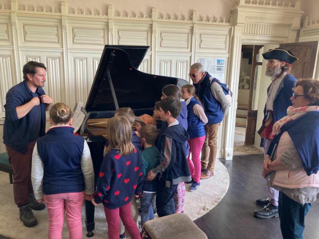 L’atelier Musical a lieu dans le salon de musique Léo Ferré, animé par Anne Chevalier, professeur de musique et de piano à Saint Malo. Mise en musique d’un conte inventé et interprété par les enfants avec de petits instruments : tambourins, xylophone, maracas, harmonica, batons de pluie, piano, violoncelle…